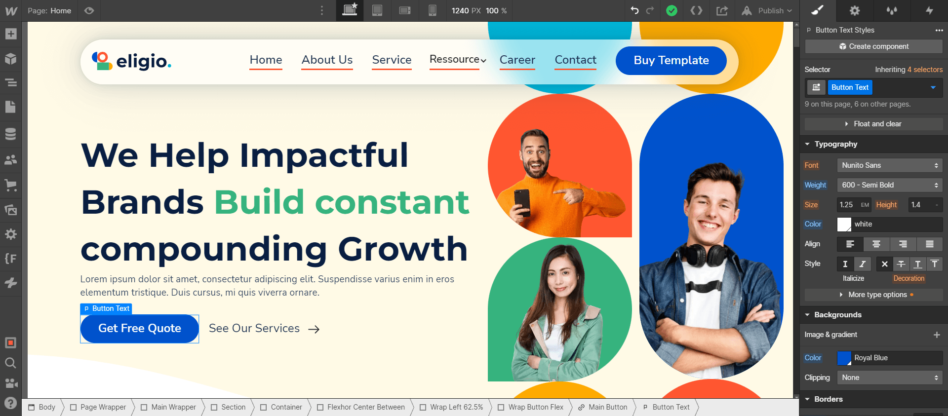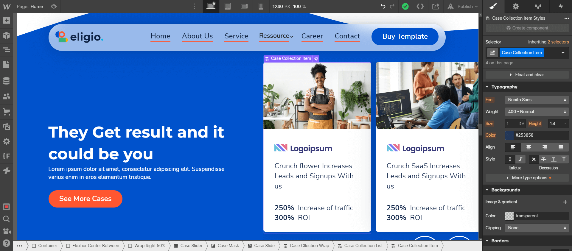 As you could see above,Eligio was built on Webflow using the best practices to make it very easy for you to edit the template and customize it to your needs.